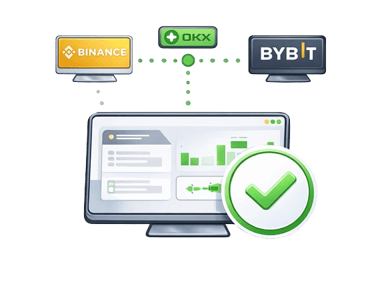 Платформа автоматической торговли криптовалютой через API на спотовом рынке. Сделки выполняются напрямую на вашем биржевом аккаунте без передачи средств и без доступа к выводу.